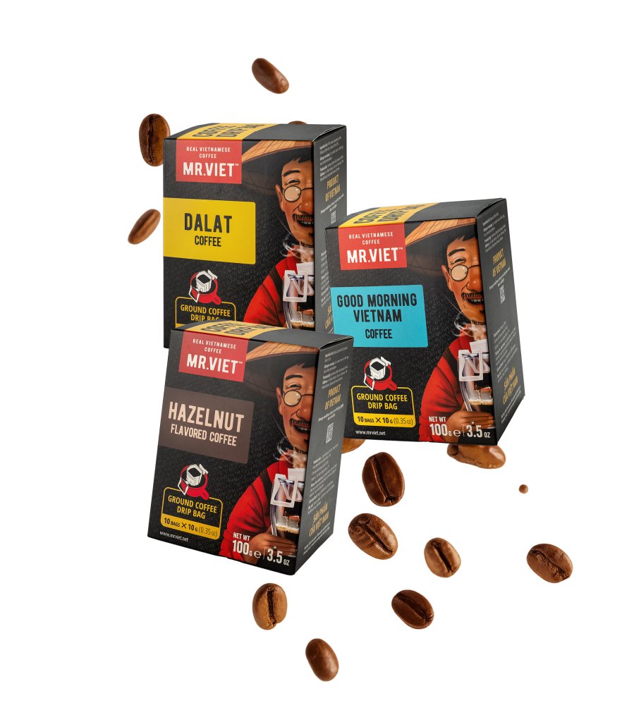 Full flavour meets convenience. Each drip—bag is a hazelnut scented invitation to slow-down and savour.