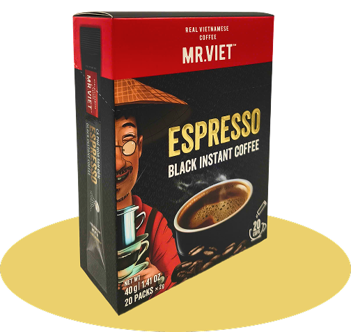 Bold espresso flavour and high-caffeine in a convenient, machine-free instant format—crafted from premium Vietnamese Robusta.